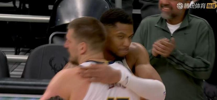 比赛结束后,约基奇主动走到字母哥面前,两人紧紧拥抱在一起。